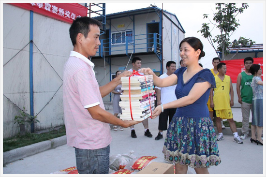 7月(yuè)5日(rì)晚, 2011年(nián)夏季“六送”活動 在我公司孔浦朱家(jiā)安置房(fáng)工(gōng)地(dì)隆重舉行(xíng₽)。江北(běi)區(qū)總工(gōng)會(huì)主席、街(jiē)道(dào)黨工(gōng)委書(shū)記、宣傳部長(ch♣áng)、辦事(shì)處主任、安監所長(cháng)、計(jì)生(shēng)委主任、街(jiē)道(dào)總工(gōng)會(huì)主席、欣捷黨工(gōn÷g)部負責人(rén)聯合為(wèi)活動現(xiàn)場(chǎng)一(yī)線工(gōng)人(rén)送上(shàng)了(le)防暑食品、日(rì)用(yòng)品、藥品以及圖β書(shū),安全宣傳畫(huà)冊,并播放(fàng)了(le)紅(hóng)色電(diàn)影(yǐng)。